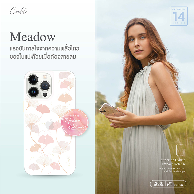 - รุ่น Meadow เคสโปร่งแสงที่ได้แรงบันดาลใจมาจากความพลิ้วไหวของใบแปะก๊วยเมื่อต้องสายลมอ่อนๆ มาพร้อมดีไซน์บางเบาและปุ่มสัมผัสที่แม่นยำ ผลิตจากวัสดุ IML TPU COEHL by UNIQ รุ่น Meadow มี 1 สี คือ สี SPRING PINK วางจำหน่ายในราคา 890 บาท