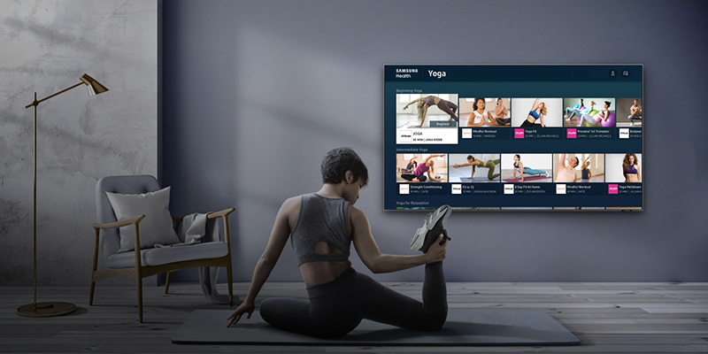 ยิมปิดไม่ใช่ปัญหาอีกต่อไป เพราะ Samsung Health จะช่วยเปลี่ยนบ้านให้กลายเป็นฟิตเนสขนาดย่อมด้วยการรวบรวมโปรแกรมออกกำลังกายกว่า 120 รายการจากเทรนเนอร์และพาร์ทเนอร์สตูดิโอชั้นนำ นำโดย Fitplan, Jillian Michaels Fitness, Echelon, barre3 และอื่นๆ อีกมากมาย รวมถึง Calm ซึ่งเป็นแอปพลิเคชันอันดับหนึ่งในกลุ่ม Mental Fitness สำหรับฝึกสมาธิและการนอนหลับ โดยผู้ใช้ Samsung Health สามารถเข้าถึงโปรแกรมที่หลากหลายเหล่านี้ได้ผ่านซัมซุงสมาร์ททีวี และหากใช้งานควบคู่ไปกับ Galaxy Watch ก็จะสามารถติดตามข้อมูลและสถิติการออกกำลังกายต่างๆ อาทิ อัตราการเต้นของหัวใจได้แบบเรียลไทม์