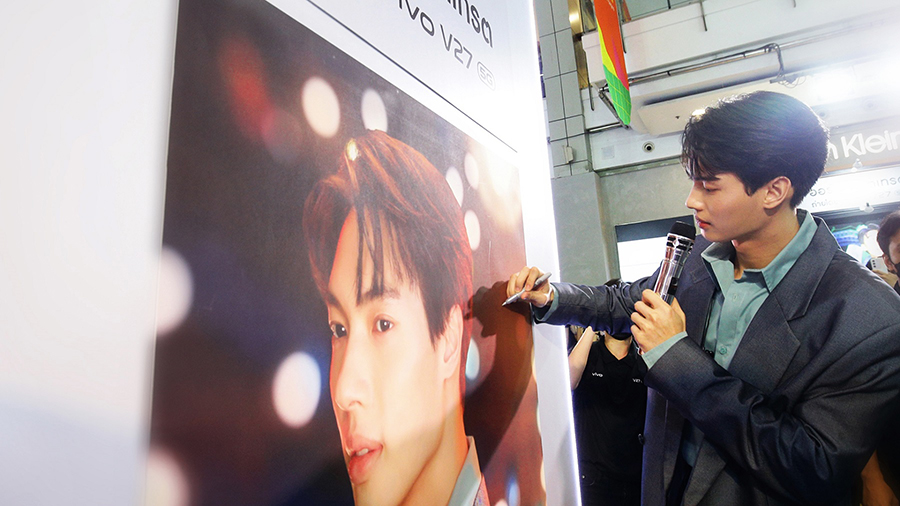 วิน-เมธวิน พรีเซ็นเตอร์ vivo V27 5G ขณะสัมภาษณ์สื่อมวลชนอย่างคับคั่ง