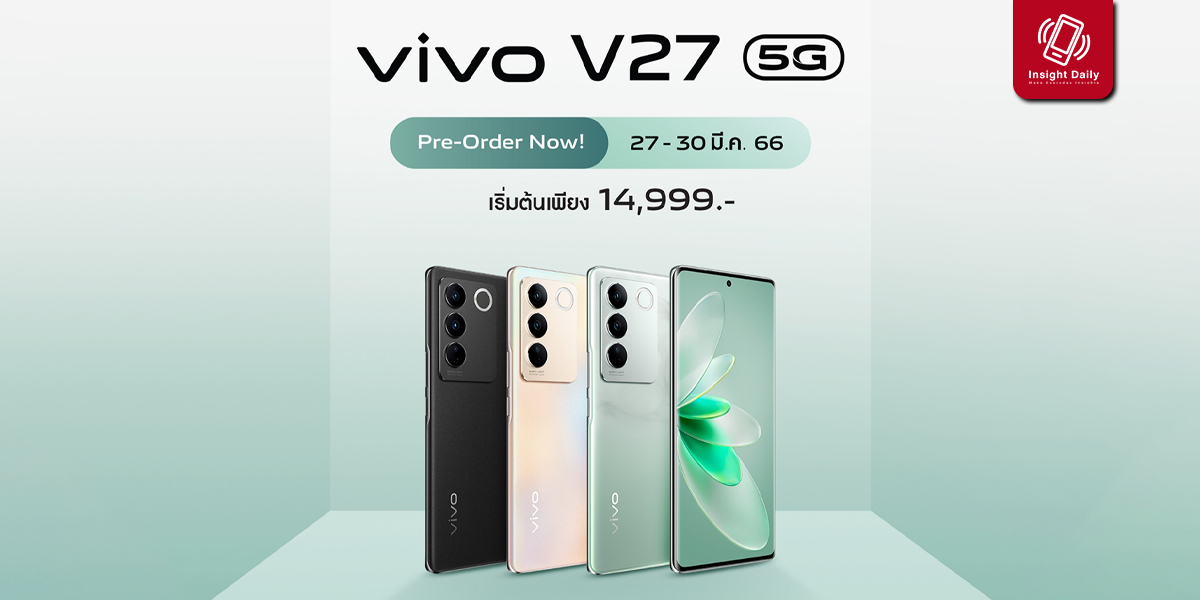 vivo เปิดพรีออเดอร์ V27 5G ราคาเริ่มต้น 14,999 บาทพร้อมรับสิทธิพิเศษ 3 ต่อ ได้แล้ว วันนี้ – 30 มี.ค. 66