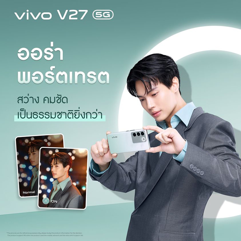 vivo V27 5G สมาร์ตโฟนรุ่นใหม่ล่าสุดจากตระกูล V Series ถูกออกแบบมาอย่างลงตัวภายใต้แนวคิด “ออร่าพอร์ตเทรต เผยทุกเฉดที่เป็นคุณ” อัดแน่นด้วยฟีเจอร์ เทคโนโลยีและสมรรถนะรอบด้าน มาพร้อมไฮไลท์เด่นอย่างเทคโนโลยี “Aura Light Portrait System” ชูประสบการณ์ถ่ายภาพพอร์ตเทรตขั้นเทพราวกับตากล้องมืออาชีพ เซลฟี่่คมชัดด้วยกล้องหน้า 50 ล้านพิกเซล พร้อมระบบออโต้โฟกัส เนรมิตภาพถ่ายแบบมือโปรด้วยกล้องหลัก 50 ล้านพิกเซลพร้อมโหมดถ่ายภาพให้เลือกอย่างจุใจ ดีไซน์ฝาหลังแบบกระจกเทคโนโลยี Color-Changing Glass โดดเด่นมีสไตล์ด้วยลูกเล่นไล่เฉดสีตามอุณหภูมิ พร้อมเผยเฉดสีใหม่ “สีเขียวหยก” (Emerald Green) ที่ดูหรูหราพร้อมสะกดทุกสายตา