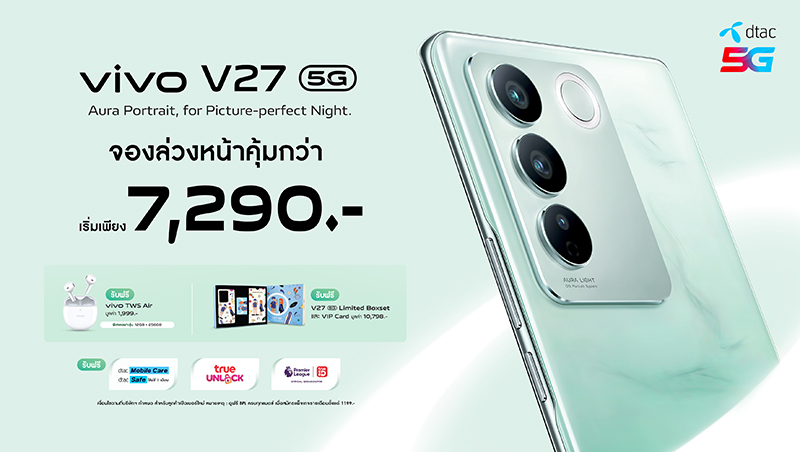 vivo จับมือ dtac ส่งโปรโมชันพิเศษต้อนรับ vivo V27 5G เริ่มต้นเพียง 7,290 บาท จองก่อนใคร วันนี้ – 30 มี.ค. 66
