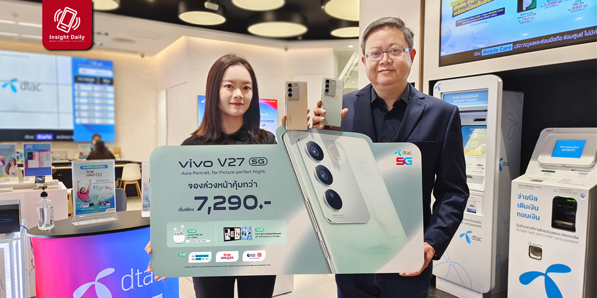 vivo จับมือ dtac ส่งโปรโมชันพิเศษต้อนรับ vivo V27 5G เริ่มต้นเพียง 7,290 บาท จองก่อนใคร วันนี้ – 30 มี.ค. 66