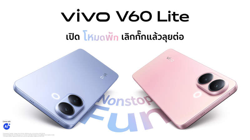 vivo แบรนด์สมาร์ตโฟนชั้นนำระดับโลก พร้อมพาทุกคนก้าวข้ามทุกสถานการณ์ที่กั๊กความสนุกในชีวิต ด้วยการนำเสนอสมาร์ตโฟนรุ่นใหม่ล่าสุด “vivo V60 Lite” ภายใต้แนวคิด ‘เปิดโหมดพัก เลิกกั๊ก แล้วลุยต่อ’ ที่ออกแบบมาเพื่อตอบโจทย์ไลฟ์สไตล์คนรุ่นใหม่ที่ต้องการใช้งานสมาร์ตโฟนในการพักผ่อน เพื่อหลีกหนีจากสิ่งที่ทำต่อเนื่องตลอดทั้งวัน ไม่ว่าจะเป็นการ ‘พักชาร์จ’ แบตเตอรี่ ‘พักงาน’ เพื่อรีบูตสมอง หรือ ‘พักเล่น’ เกม ก็สามารถทำได้อย่างเต็มที่ด้วยประสิทธิภาพที่ให้มาแบบ “ไม่กั๊ก” เตรียมส่งมอบถึงมือผู้ใช้งานชาวไทยอย่างเป็นทางการ วันที่ 18 ตุลาคม 2568 นี้!