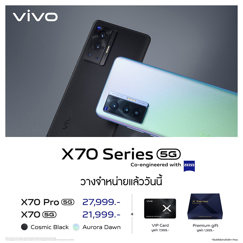 - vivo X70 5G วางจำหน่ายที่ราคา 21,999 บาท