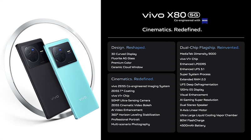 vivo X80 Series 5G เป็นผลงานที่พิสูจน์ให้เห็นถึงความมุ่งมั่นและตั้งใจที่จะพัฒนาเทคโนโลยีสำหรับการถ่ายภาพและวิดีโอระดับมืออาชีพบนสมาร์ตโฟน รวมทั้งแสดงให้เห็นถึงการร่วมมือเป็นพันธมิตรกันอย่างต่อเนื่องระหว่าง vivo และผู้ผลิตเลนส์กล้องชั้นนำระดับโลกอย่าง ZEISS มามอบประสบการณ์ล้ำหน้าทางเทคโนโลยีการถ่ายภาพและวิดีโอ เพื่อช่วยให้ผู้บริโภคบันทึกช่วงเวลาอันมีค่าได้ครบถ้วนทุกมุมมอง