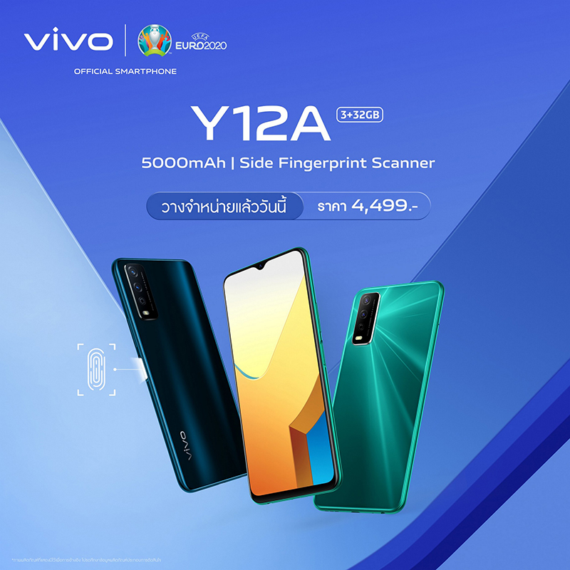 vivo Y12A พร้อมวางจำหน่ายอย่างเป็นทางการ ในวันที่ 18 มิถุนายน 2564 ที่ ราคา 4,499 บาท ณ vivo Brand Shop ทุกสาขาและตัวแทนจำหน่ายทั่วประเทศ และช่องทาง vivo Official Online Store รวมถึง vivo Flagship Store บนร้านค้าออนไลน์ชั้นนำ ติดตามรายละเอียดเพิ่มเติมได้ที่ www.vivo.com/th