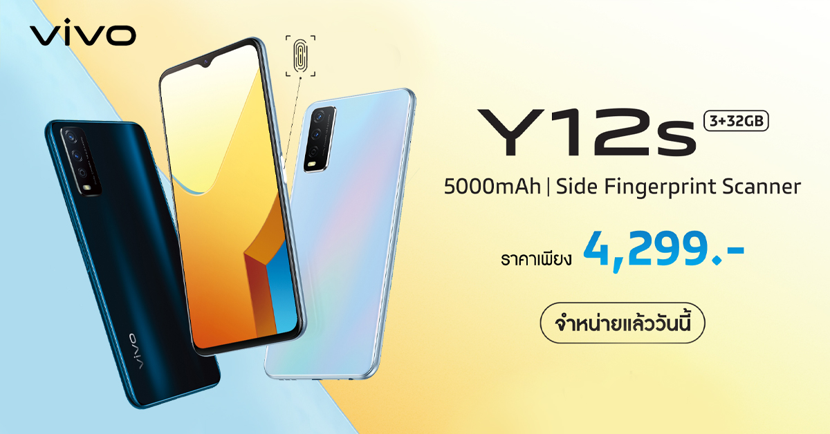 Vivo Y12s วางจำหน่ายแล้ววันนี้ ในราคาเพียง 4,299 บาท