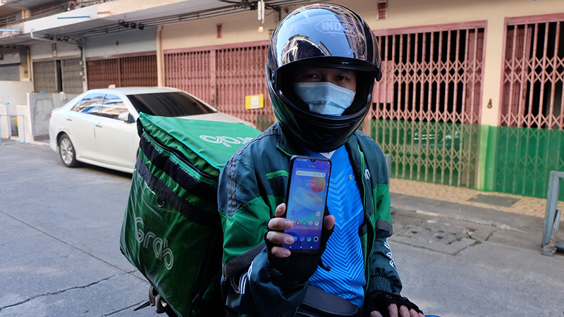 คุณพรชัย จิตมาตย์(พนักงานส่งของ) “ผมขับแกรปทั้งวันไม่มีเวลามาชาร์จแบตแน่นอนครับ vivo Y3s นี่หมดห่วงเลยครับ ทำงานทั้งวันแบตเหลือๆ และก็ราคาน่าคบหามากครับ”