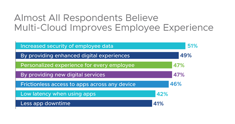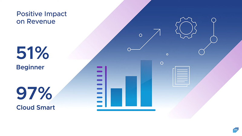 เมื่อองค์กรต่าง ๆ เริ่มเข้ามาใช้งานมัลติคลาวด์ เขาจะต้องเผชิญหน้ากับความซับซ้อนในการทำงาน ความท้าทายด้านความปลอดภัย และทักษะที่ยังไม่เพียงพอในการใช้งาน (1) แม้ว่าจะมีความท้าทายต่างๆ เหล่านี้ องค์กรต่างๆ ก็ยังคงเร่งความเร็วในการใช้งาน มัลติคลาวด์ (2) เมื่อมีการทำงานร่วมกันของพันธมิตร VMware ช่วยให้องค์กรต่างๆ สามารถนำแนวทาง “Cloud Smart” มาใช้ได้สำเร็จ โดยมีความยืดหยุ่นและมีทางเลือกสำหรับคลาวด์ที่หลากหลาย องค์กรแบบ Cloud-smart จะได้รับประโยชน์จากการใช้งานมัลติคลาวด์ สังเกตได้จากความสามารถในการแข่งขันที่เพิ่มขึ้นและผลลัพธ์ในระดับบนสุด ตัวอย่างจากผลการวิจัยของ Vanson Bourne ที่ได้รับมอบหมายจาก VMware พบว่า 97% ขององค์กรแบบ Cloud-smart ที่ตอบแบบสอบถามกล่าวว่า แนวทางในการใช้มัลติคลาวด์สามารถช่วยกระตุ้นการเติบโตของรายได้ให้ดีขึ้น และ 96% กล่าวว่าสามารถช่วยเพิ่มผลกำไรได้ (3) การเรียนรู้เหล่านี้แสดงให้เห็นถึงความสามารถของการให้บริการ VMware Cross-Cloud ซึ่งช่วยให้ลูกค้าได้รับประโยชน์จากการเข้าถึง Cloud-smart โดยช่วยให้พวกเขาเลือกคลาวด์ที่เหมาะสมสำหรับแอปพลิเคชันที่ต้องการใช้งาน
