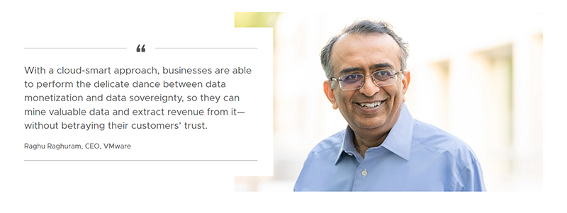 นายรากู รากูราม ซีอีโอของ VMware กล่าวว่า “VMware และพันธมิตรยังคงนำเสนอนวัตกรรมใหม่ ๆ เพื่อช่วยให้ลูกค้าได้รับประโยชน์จากการใช้งาน cloud-smart ลูกค้าล้วนตระหนักดีว่า การทำงานในสภาพแวดล้อมแบบมัลติคลาวด์ทำให้พวกเขามีทางเลือกระหว่างคลาวด์ทั้งแบบที่มีข้อกำหนดและแบบสากลในการเรียกใช้งานแอปพลิเคชันของพวกเขา VMware สามารถช่วยลูกค้าในทุกขั้นตอนของการเปลี่ยนกับความซับซ้อนของมัลติคลาวด์ให้เป็นข้อได้เปรียบในการแข่งขัน องค์กรต่างๆ ให้ความสำคัญกับดิจิทัลทรานส์ฟอร์เมชัน โดยมีเป้าหมายสำคัญคือการเร่งความเร็วในการพัฒนานวัตกรรม เราเข้าใจถึงความท้าทายที่พวกเขาเผชิญทั้งทางด้านต้นทุน ความปลอดภัยทางไซเบอร์ และการใช้พลังงาน เรา ผู้ที่ยืนอยู่ในตำแหน่งที่ไม่เหมือนใคร พร้อมที่จะช่วยองค์กรต่างๆจัดการกับความท้าทายทั้งหลายเหล่านี้ผ่านนวัตกรรมและพันธมิตรที่เพิ่มมากขึ้นเรื่อยๆ”