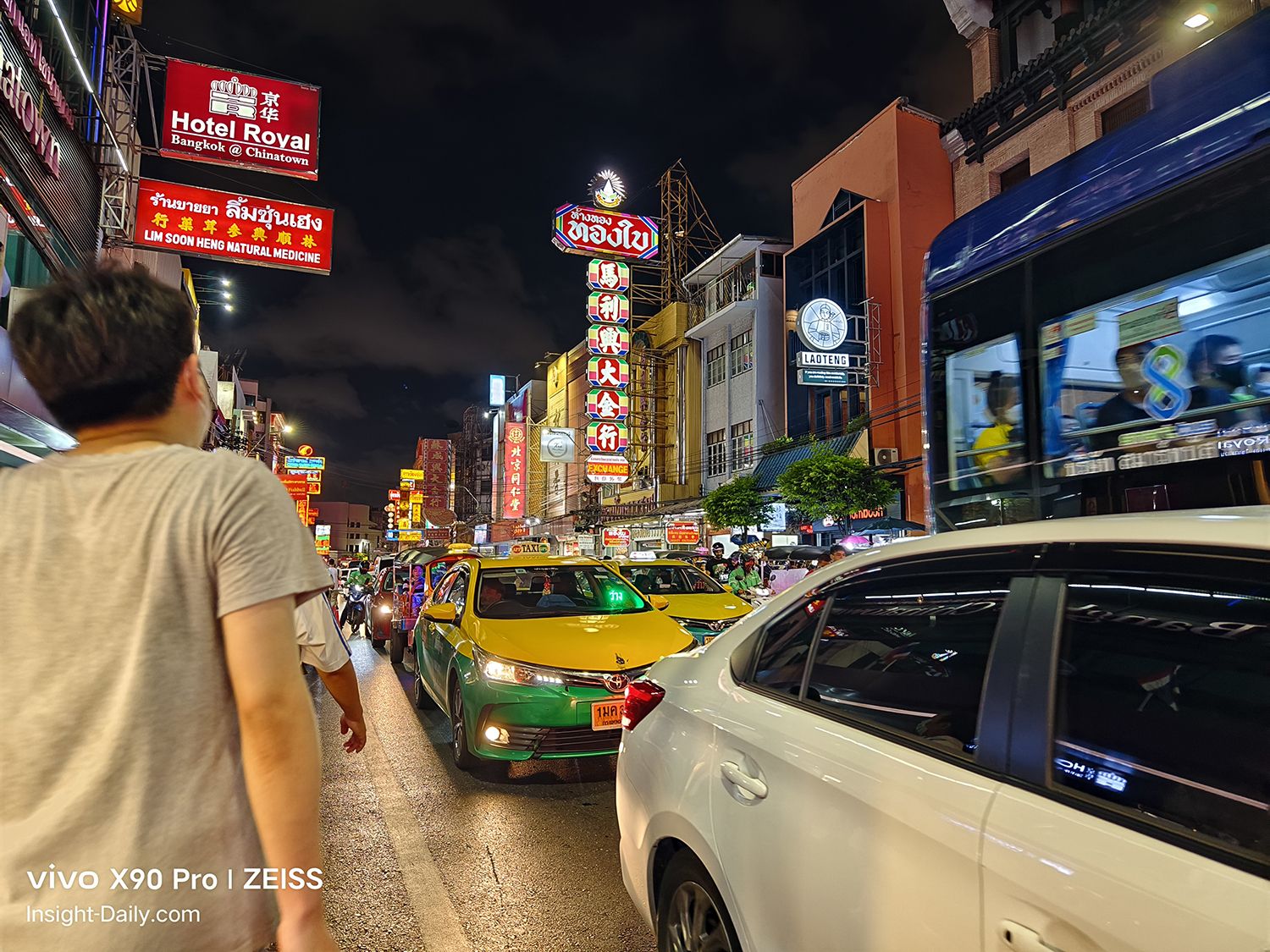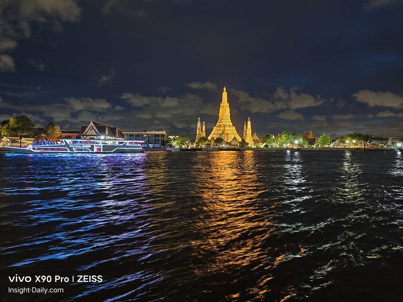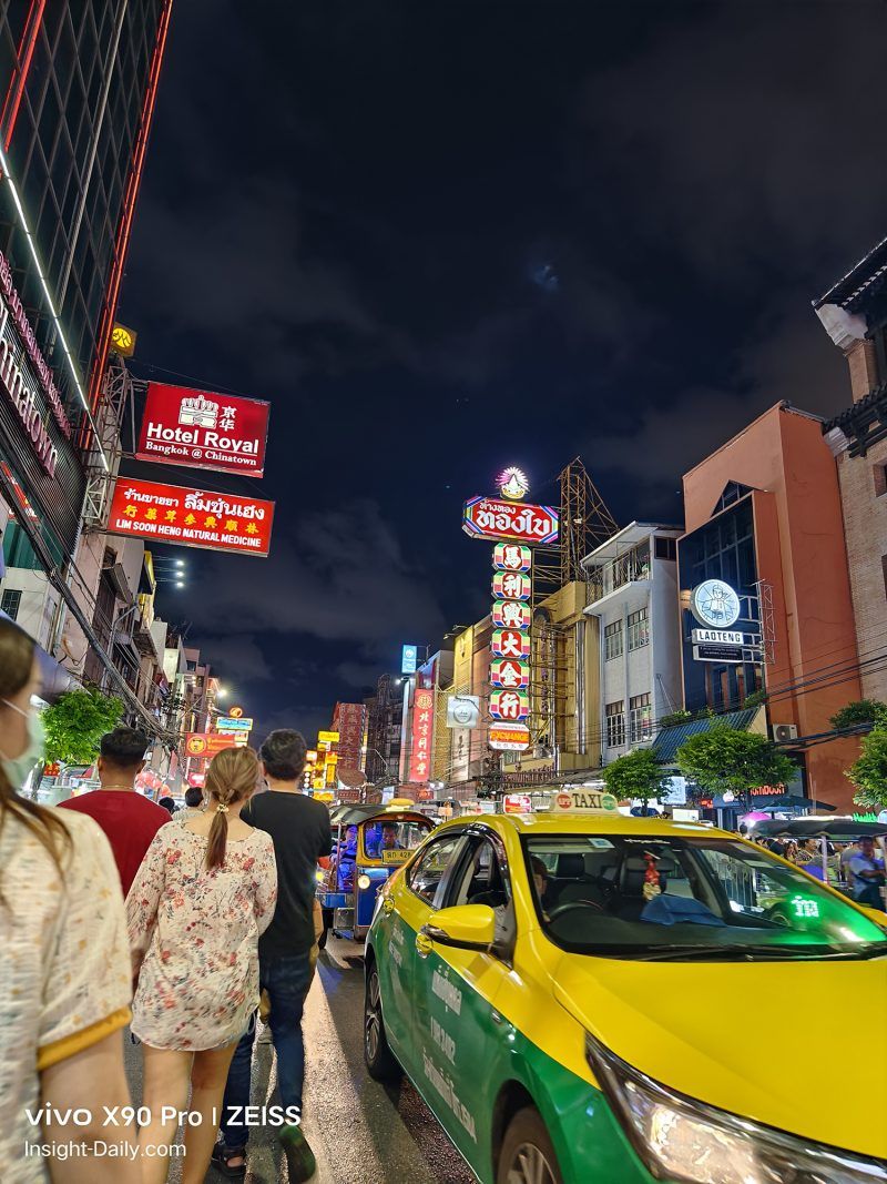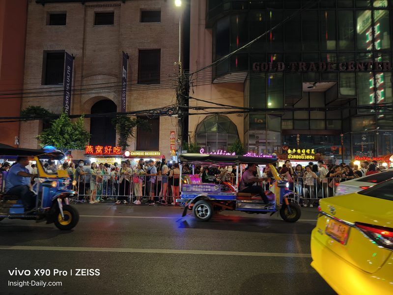 กลับมาที่เรื่องของการใช้เจ้า vivo X90 Pro 5G เครื่องนี้กันค่ะ ท่ามกลางแสงสีสวยงามและท้องฟ้ามืดๆ แบบนี้ เราเลือกเปิด Night Mode ขึ้นมาใช้งาน ซึ่งกล้องสามารถเก็บรายละเอียดต่างๆ ได้ดีมาก แต่ด้วยความที่คนค่อนข้างจอแจ เราต้องเดินตามกระแสไปเรื่อย การถ่ายภาพด้วยโหมด Night จะต้องใช้เวลาอยู่ในหลักวินาที แต่นั่นก็เพียงพอแล้วที่จะทำให้เราโดนด่า (อยู่ในใจ) เราจึงเลือกถ่ายด้วยโหมดธรรมดา เห็นผลจากภาพที่ออกมา คาดว่า AI คงมีการประมวลผลให้ระดับหนึ่งแล้ว เพราะความสว่างแทบไม่แตกต่างจากการเปิดโหมด Night เลย แต่รายระเอียดและการเก็บแสงภาพต่างๆ อาจจะทำได้ไม่ดีเท่า