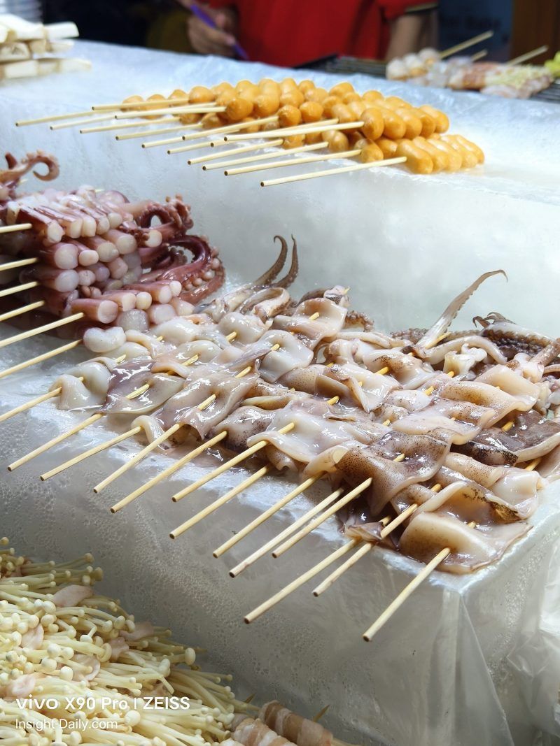 เราเดินทางกลับด้วยการมุดย้อนไปที่ถนนแปลงนามเหมือนเดิม ขามาคงจะรีบเดินผ่านไป จนเพิ่งมาสังเกตเห็นสองข้างทางที่เต็มไปด้วยอาหารหลากหลาย หรืออาจเพราะความหิวที่ทำให้สายตาของเราเริ่มมองเห็นสิ่งที่เรียกว่า ‘อาหาร’ ได้ชัดขึ้น พอพูดอาหาร ก็เห็นว่า vivo X90 Pro 5G นี้ มาพร้อม Food Mode สำหรับช่วยในการถ่ายอาหารแยกออกมาด้วย ถึงจะหิวมาก แต่เราก็ขอแอบแวะยกมือถือลองถ่ายไปด้วยตามทาง