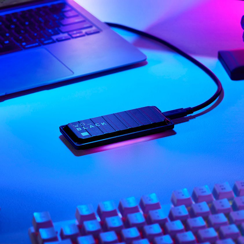 WD_BLACK P40 Game Drive SSD – สร้างสรรค์มาเพื่อเกมเมอร์ที่มองหาอุปกรณ์จัดเก็บข้อมูลแบบพกพาที่มีทั้งประสิทธิภาพและรูปแบบที่น่าดึงดูด WD_BLACK P40 Game Drive SSD เป็นอินเทอร์เฟซแบบ USB 3.2 Gen2x2 ที่มีความเร็วในการอ่านสูงสุด 2,000 MB/s พร้อมไฟ RGB ที่สามารถปรับแต่งได้ (ใช้งานได้เฉพาะกับ Windows เท่านั้น) แดชบอร์ด WD_BLACK (สามารถดาวน์โหลดเพื่อใช้งานได้) ช่วยควบคุมจอแสดงผลไฟ LED ได้อย่างสมบูรณ์แบบ และสามารถซิงค์การทำงานเข้ากับระบบไฟ RGB ที่มีอยู่จำนวนมากเพื่อการตั้งค่าให้เข้ากับสไตล์ของเกมเมอร์แต่ละคนได้ รูปลักษณ์การออกแบบที่เพรียวบาง กะทัดรัด และรองรับการตกกระแทก จึงเรียกว่าเป็นตัวเลือกที่ลงตัวและเหมาะที่จะพกพาไปเพื่อเล่นเกมขณะเดินทาง