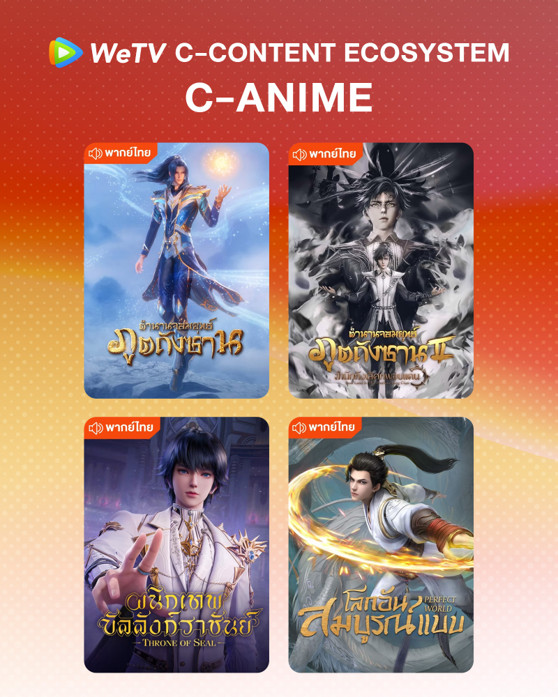 - C-Anime เพิ่มจำนวนอนิเมะคุณภาพโดยเจาะกลุ่มเป้าหมายที่เป็นกลุ่มผู้ชาย ด้วยเนื้อหาของอนิเมะจีนที่หลากหลายและมีคุณภาพระดับพรีเมียม โดยส่วนใหญ่เป็นอนิเมะจีนที่ผลิตโดย Tencent Video รับชมแบบ Exclusive ที่ WeTV เท่านั้น