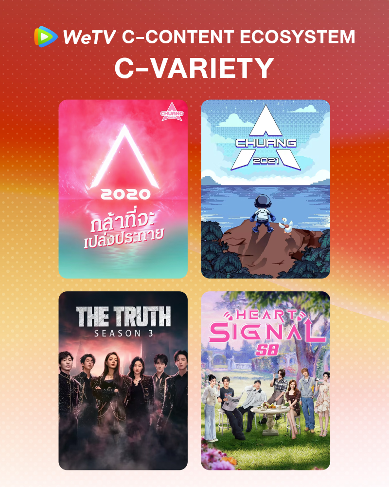 WeTV แพลตฟอร์มวิดีโอสตรีมมิงที่สุดความบันเทิงคุณภาพแห่งเอเชีย รุกตลาดชู C-Content Ecosystem เดินเกมมัดใจผู้ชมให้อยู่กับแพลตฟอร์มด้วย 6 แกนคอนเทนต์เรือธง ได้แก่ C-Series เน้นนำเสนอซีรีส์ฟอร์มยักษ์ระดับ S และ S+, C-Mini Series มินิซีรีส์ที่เน้นเนื้อหากระชับ ย่อยง่าย, C-Anime เพิ่มจำนวนอนิเมะจีนคุณภาพเพื่อขยายกลุ่มเป้าหมายไปถึงกลุ่มผู้ชาย, C-Variety นำเสนอวาไรตี้ใหม่ๆ ที่มีศิลปินจีนระดับแถวหน้ามาร่วมรายการ