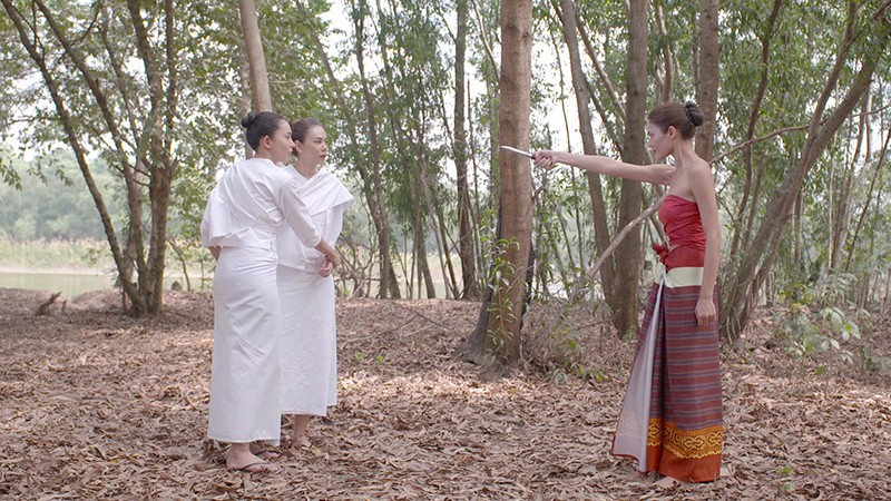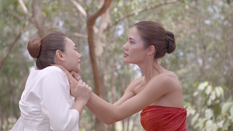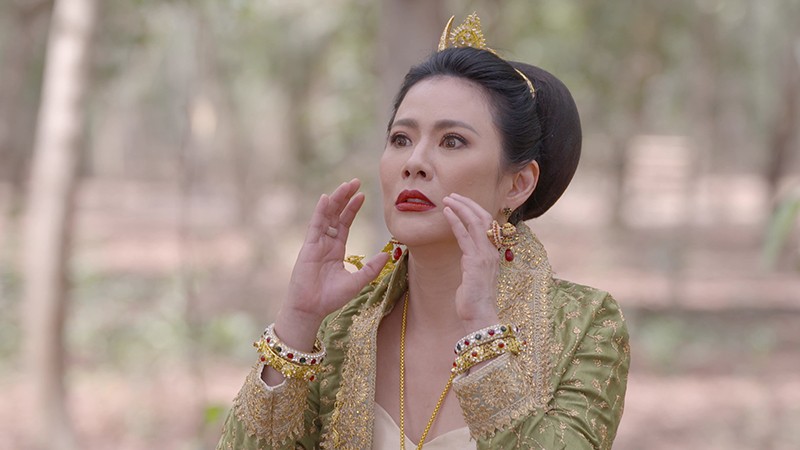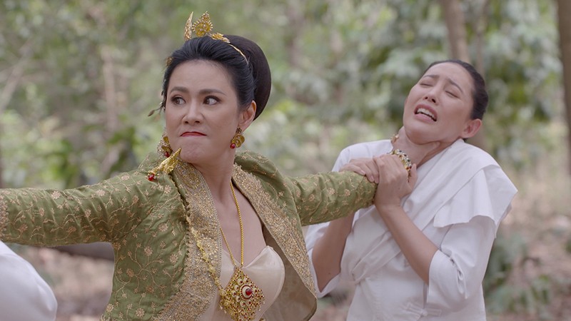 เป็นฉากที่ เจ้านางหลวงสร้อยทิพย์ (น้ำผึ้ง) ตามมาจัดการ เจ้านางนันดา (ตอง) ถึงในวัด ในขณะที่เจ้านางนันดาและฝ้ายคำกำลังปฏิบัติธรรม ฝ้ายคำ (เฌอเบลล์) เห็นว่า ผีกะเอิ้งโหลง (น้ำตาล) กำลังสิงเจ้านางหลวงสร้อยทิพย์อยู่ เจ้าอินเชวง (โอห์ม) เลยสั่งให้ฝ้ายคำพาเจ้านางนันดาหนีไป และตนจะสู้กับทหารเพื่อถ่วงเวลา เอิ้งโหลงในร่างเจ้านางหลวงสร้อยทิพย์ ตามมาดักจะจัดการทั้งคู่ ทำให้ฝ้ายคำต้องสู้กับผีกะเอิ้งโหลง