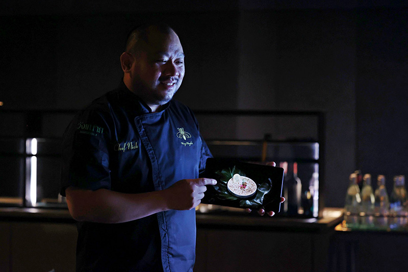 มื้ออาหารสุดพิเศษ เริ่มต้นด้วยการต้อนรับอันน่าตื่นเต้นจากเชฟนิค ณัฏฐพล ภวไพบูลย์ เชฟกระทะเหล็กประเทศไทย ที่มาบอกเล่าความพิเศษและเรื่องราวของอาหารไทยอินสปาย (Thai Inspired) แต่ละจาน พร้อมคอนเซ็ปต์ “Awake”ที่สอดคล้องกับวงจรชีวิตและรักเดียวของหิ่งห้อย โดยเมื่อถึงเมนูเรียกน้ำย่อยสุดพิเศษจานที่ 3 เชฟนิค ก็ปรากฎตัวพร้อมจานปริศนาออกมาจากความมืด “คั่วขนุน” ที่ส่องแสงเรืองรองออกมาอย่างโดดเด่นในที่มืด ก่อนจะเผยให้เห็นว่าแท้จริงแล้วความคมชัดนั้นถูกถ่ายทอดผ่านแท็บแล็ตเรือธง HUAWEI MatePad Pro 11-inch สว่างไสวคมชัดแม้อยู่ในที่แสงน้อยเสมือนปลดปล่อยหิ่งห้อยโบยบินออกมาท่ามกลางความมืด บอกเล่าเรื่องราวเมนูอาหารที่รังสรรค์ขึ้นด้วยความประณีตได้ชัดเจนทุกรายละเอียดสีสันคมชัดเหมือนอยู่บนจานจริง บนจอ HUAWEI Real Color FullView Display แบบ OLED 11 นิ้ว พร้อมอัตราการรีเฟรชหน้าจอสูงสุด 120Hz ความละเอียดสูงถึง 2560 x 1600 พิกเซล ที่ใช้พื้นที่ถึง 92% ของตัวเครื่อง ทำให้แสดงภาพเมนูได้เต็มจอและยังแสดงผลสีชัดจัดจ้านโดยใช้มาตรฐาน DCI-P3 ระดับ 100% △E<1 ที่แสดงผลได้ถึง 1.07 พันล้านสี และความสว่าง 600 nits สื่อมวลชนถูกเรียกน้ำย่อยจากสีสันอันสมจริงจากภาพเมนูในแท็บเล็ต ก่อนรับประสบการณ์อันเลิศรส ทั้งยังได้เห็นถึงความบางและเบา พกพาง่ายของแท็บเล็ตที่มีความบางเพียง 5.9 มม. และน้ำหนักเพียง 449 กรัม ให้เชฟได้บอกเล่าเรื่องราวของอาหารได้อย่างสะดวกสบายด้วยการถือเพียงมือเดียว