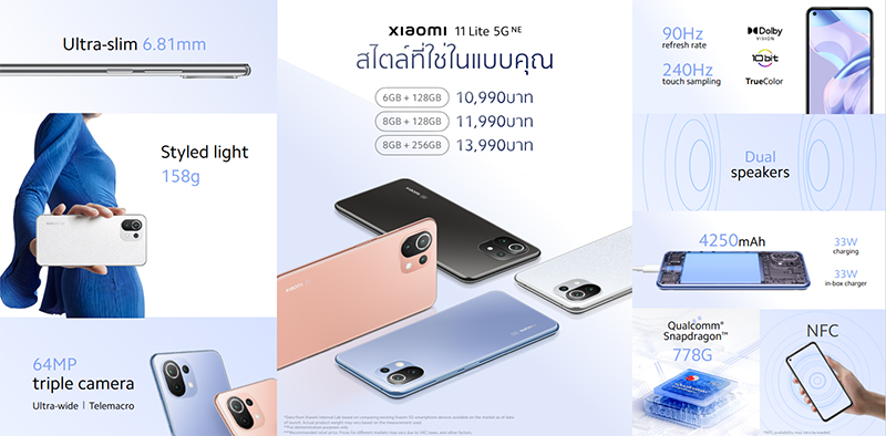 Xiaomi 11 Lite 5G NE: สมาร์ทโฟนประสิทธิภาพระดับแฟล็กชิปในดีไซน์บางเฉียบและน้ำหนักเบา