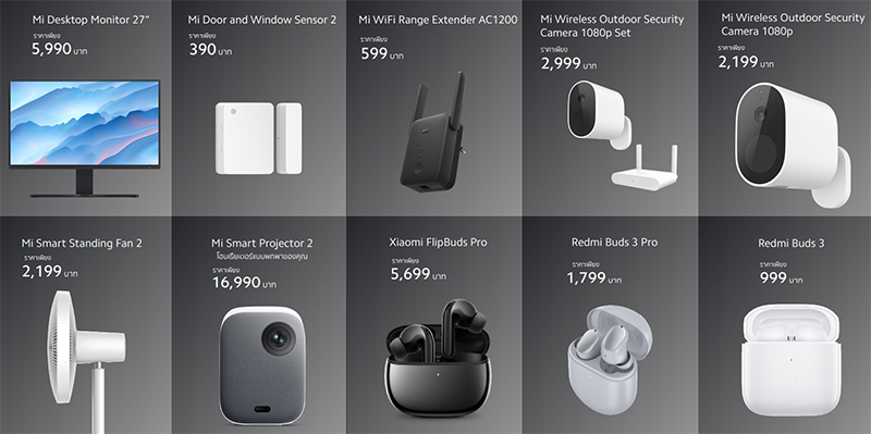 นอกจากนี้ เสียวหมี่ยังมีผลิตภัณฑ์อื่นๆ อีกมายมากที่จะทำให้ชีวิตสะดวกสบายมากยิ่งขึ้น ประกอบด้วย Mi Desktop Monitor 27” จอเดสก์ท็อป ราคา 5,990 บาท และ Mi WiFi Range Extender AC1200 อุปกรณ์กระจายสัญญาณ WiFi ราคา 599 บาท พร้อมวางจำหน่ายตั้งแต่วันที่ 23 กันยายน 2564 เป็นต้นไป และสำหรับ Mi Door and Window Sensor 2 เซ็นเซอร์นิรภัยบริเวณประตูและหน้าต่าง ราคา 390 บาท, Mi Smart Projector 2 จอโปรเจ็กเตอร์อัจฉริยะ ราคา 16,990 บาท, Redmi Buds 3 Pro หูฟังไร้สาย ราคา 1,799 บาท และ Redmi Buds 3 หูฟังไร้สาย ราคา 999 บาท พร้อมวางจำหน่ายตั้งแต่วันที่ 2 ตุลาคม 2564 เป็นต้นไป