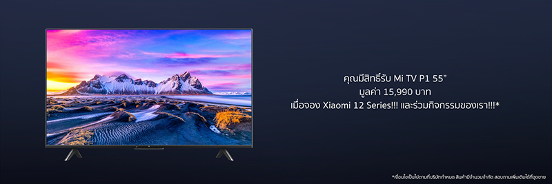 นอกจากนี้! เสียวหมี่ยังมอบเซอร์ไพรส์ให้แก่ลูกค้ากลุ่มแรกที่สั่งจอง Xiaomi 12 Pro หรือ Xiaomi 12 และร่วมกิจกรรมตามที่กำหนดโดยลูกค้ามีสิทธิ์รับ Mi TV P1 55” มูลค่า 15,990 บาท