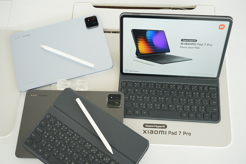 Xiaomi Pad 7 Series ประกอบไปด้วย Xiaomi Pad 7 Pro และ Xiaomi Pad 7 ซึ่งเป็นแท็บเล็ตที่กำหนดนิยามใหม่ของประสิทธิภาพการทำงานและความบันเทิงเพื่อการใช้งานของมืออาชีพและผู้ใช้ทั่วไป Xiaomi Pad 7 Series เป็นแท็บเล็ตเพื่อการทำงานที่ขับเคลื่อนด้วย AI ที่ถูกออกแบบมาเพื่อเสริมศักยภาพให้กับผู้ใช้ที่ต้องการประสิทธิภาพการทำงานและการทำงานหลายอย่างพร้อมกันได้อย่างราบรื่น แท็บเล็ตทั้งสองรุ่นมีหน้าจอขนาด 11.2 นิ้ว ความละเอียด 3.2K ที่คมชัดพร้อมอัตราส่วนภาพที่ 3:2 HDR แบบปรับได้และปกป้องสายตาด้วยการรับรองจาก TÜV Rheinland ตัวหน้าจอรองรับอัตราการรีเฟรชสูงถึง 144Hz15 จึงให้คุณรับชมภาพได้แบบไร้รอยต่อทั้งในการทำงานและเพื่อความบันเทิง นอกจากนี้ความหนาแน่นของพิกเซลที่สูงถึง 345 ppi ยังทำให้หน้าจอแสดงข้อความที่คมชัดและภาพที่สดใสอีกด้วย ทั้งนี้การปรับเทียบสีระดับสตูดิโอและขอบเขตช่วงสีที่กว้างกว่า 68 พันล้านสีจะช่วยให้คุณมั่นใจได้ถึงสีสันที่แม่นยำและสมจริง ตัวอุปกรณ์มีน้ำหนักเบาเพียง 500 กรัมและบาง 6.18 มม.เท่านั้น และยังมีลำโพงสี่ตัวพร้อม Dolby Atmos® ที่มอบเสียงอันดื่มด่ำ ในขณะที่ระบบปฎิบัติการ Xiaomi HyperOS 2 นั้นยกระดับประสิทธิภาพการทำงานขึ้นไปอีกขั้นด้วย Xiaomi HyperAI และ Xiaomi HyperConnect8