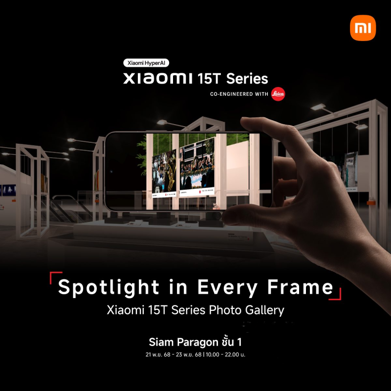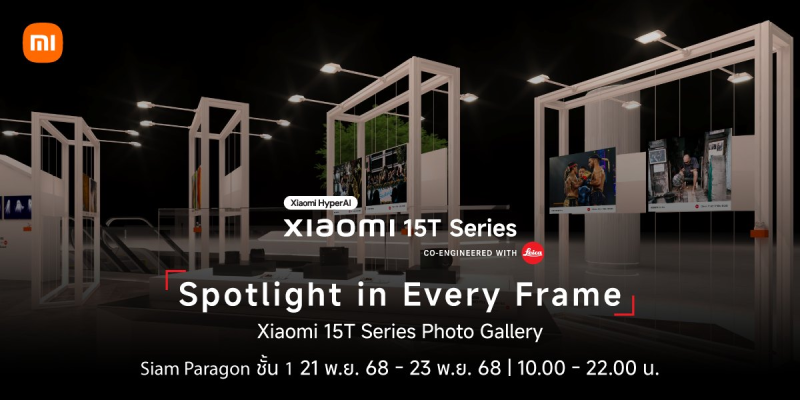 พบกับนิทรรศการภาพถ่าย “Xiaomi 15T Series Photo Gallery: Spotlight in Every Frame” ระหว่างวันที่ 21 – 23 พฤศจิกายน 2568 ณ ลาน Fashion Hall ชั้น 1 ศูนย์การค้าสยามพารากอน