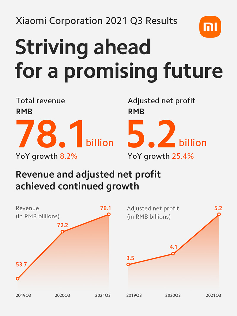 Xiaomi เผยรายงานผลประกอบการไตรมาสที่ 3 ปี 2564 ยอดรายรับยั่งยืน ผลกำไรเติบโต