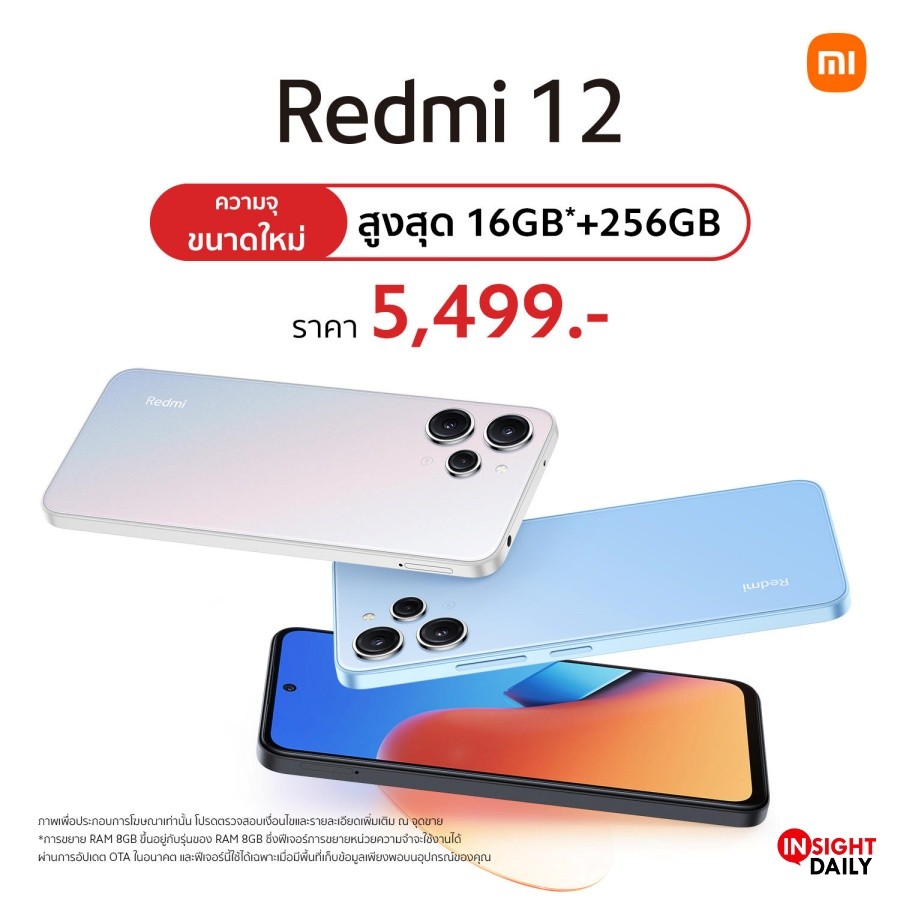 Redmi 12 รุ่นความจุใหม่ 8GB + 256GB วางจำหน่ายในประเทศไทยอย่างเป็นทางการแล้ววันนี้ โดยมีให้เลือก 3 สี ได้แก่ Midnight Black, Sky Blue และ Polar Silver ในราคาเพียง 5,499 บาท ที่ Xiaomi Store และร้านตัวแทนจำหน่ายที่ร่วมรายการทั่วประเทศ และช่องทางออนไลน์แพลตฟอร์มที่ร่วมรายการ