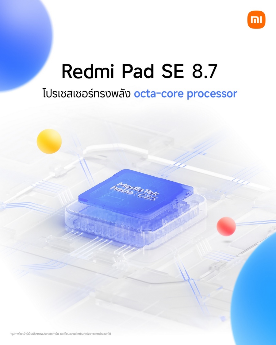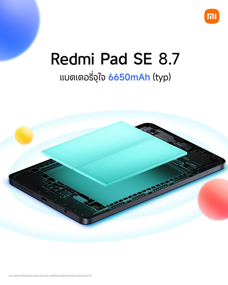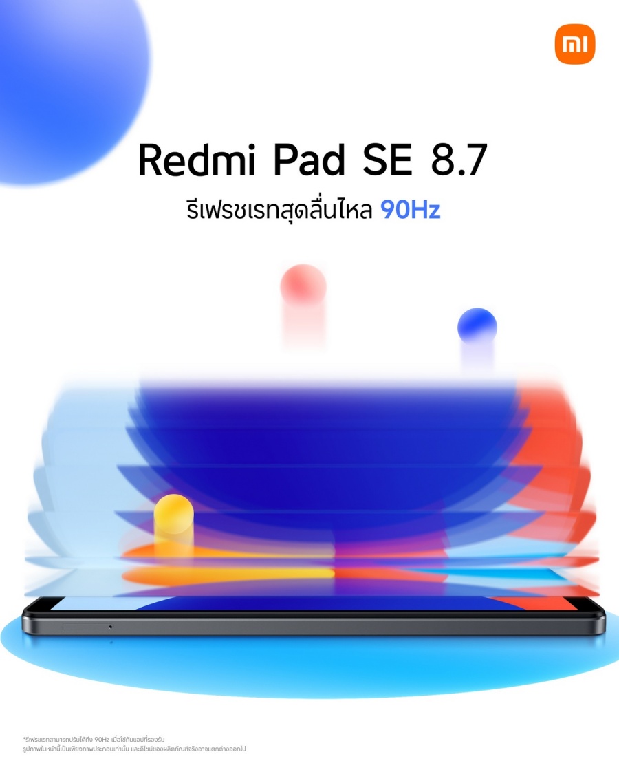เสียวหมี่ ประเทศไทย พร้อมวางจำหน่าย Redmi Pad SE 8.7 (wifi version) แท็บแล็ตที่ให้คุณพกพาความสนุกได้ทุกที่ด้วยหน้าจอถนอมสายตาขนาด 8.7 นิ้วอันคมชัด และอัตรารีเฟรชสุดลื่นไหล 90Hz ขับเคลื่อนด้วยโปรเซสเซอร์ octa-core อันทรงพลัง ทั้งยังให้คุณสนุกได้ยาวนานด้วยแบตเตอรี่ขนาดใหญ่ 6,650 mAh (typ)