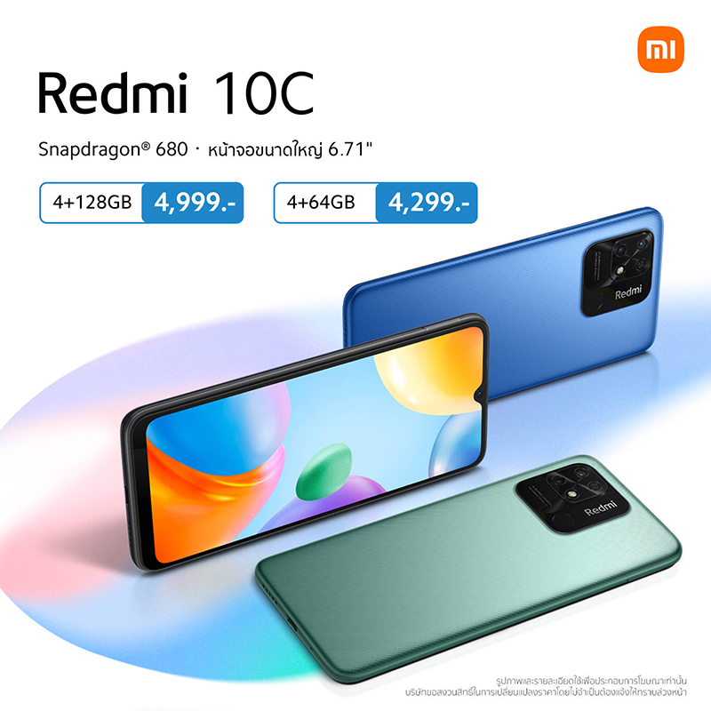 เสียวหมี่ ประเทศไทย ประกาศวางจำหน่าย Redmi 10C สมาร์ทโฟนสุดคุ้มรุ่นใหม่ล่าสุดจาก Redmi 10 Series ชูจุดเด่นด้วยชิปเซ็ต Snapdragon 680 และจอแสดงผล 6.71 นิ้ว ในราคาเริ่มต้นเพียง 4,299 บาท