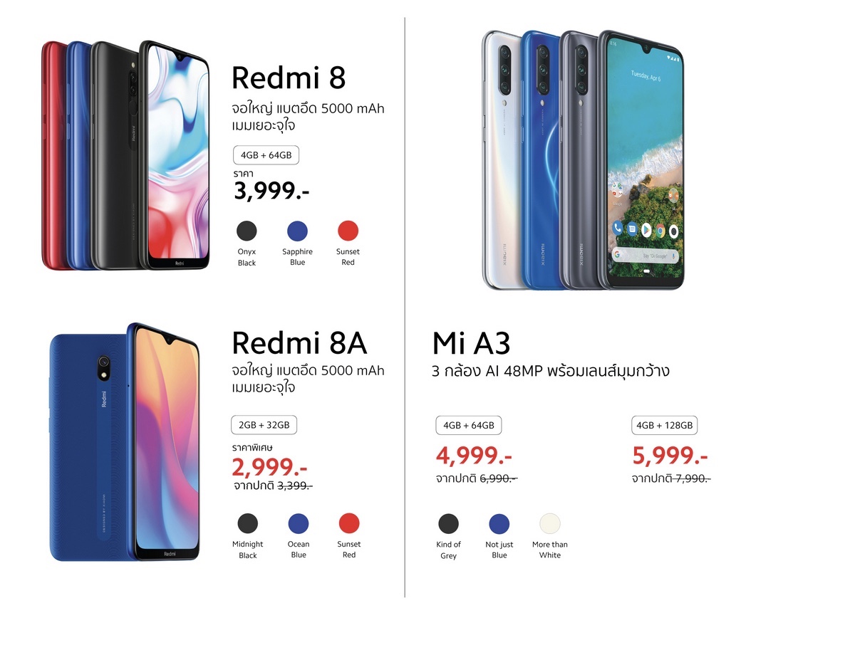 - Mi A3 (4 GB + 128 GB) ราคาพิเศษเพียง 5,999 บาท