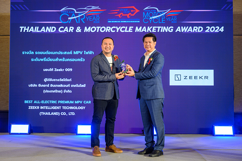 ZEEKR 009” เอ็มพีวีไฟฟ้าระดับลักชูรี จาก ZEEKR คว้ารางวัล รถยนต์อเนกประสงค์ MPV ไฟฟ้าระดับพรีเมียมสำหรับครอบครัว ในงานประกาศรางวัลรถยนต์ยอดเยี่ยมแห่งปี Thailand Car of the Year 2024 โดยการตัดสินจากคณะกรรมการบริหารสมาคมผู้สื่อข่าวรถยนต์และรถจักรยานยนต์ไทย (สรยท.)